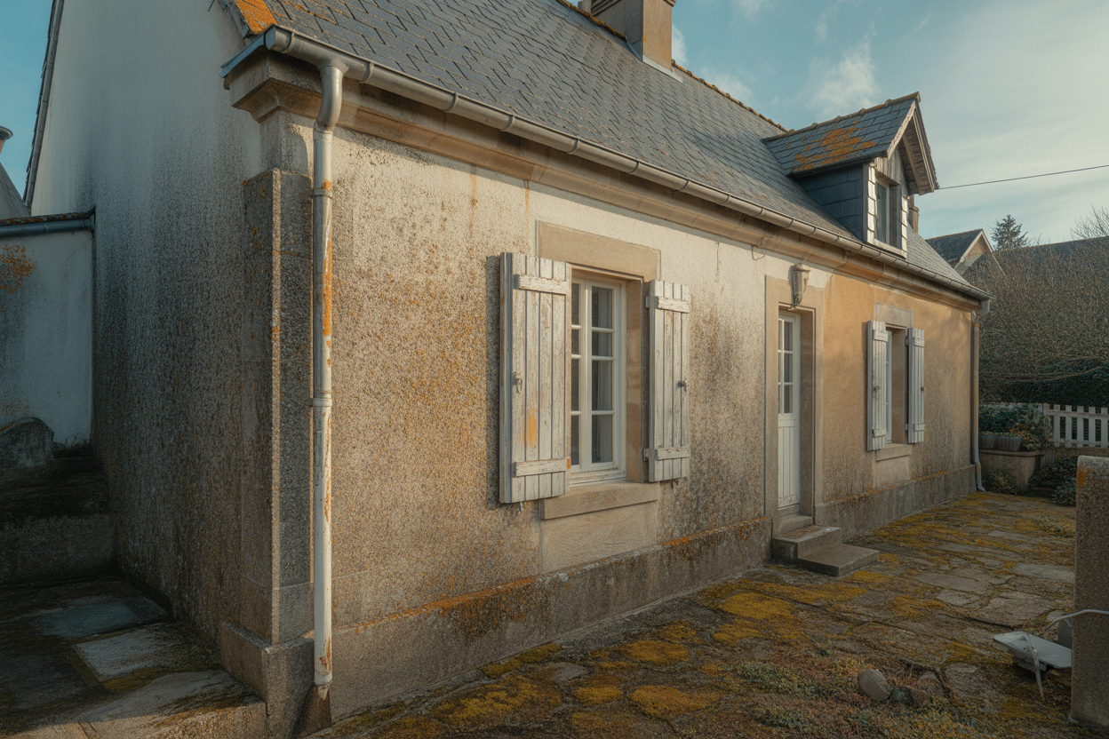 Le climat breton, humide et venteux, favorise l’accumulation de mousses, lichens, pollution et dépôts minéraux sur vos façades. Sans entretien, ces éléments peuvent pénétrer les matériaux, provoquer des dégradations prématurées, altérer l’aspect esthétique de votre maison et favoriser l’humidité ou la dégradation du support.
